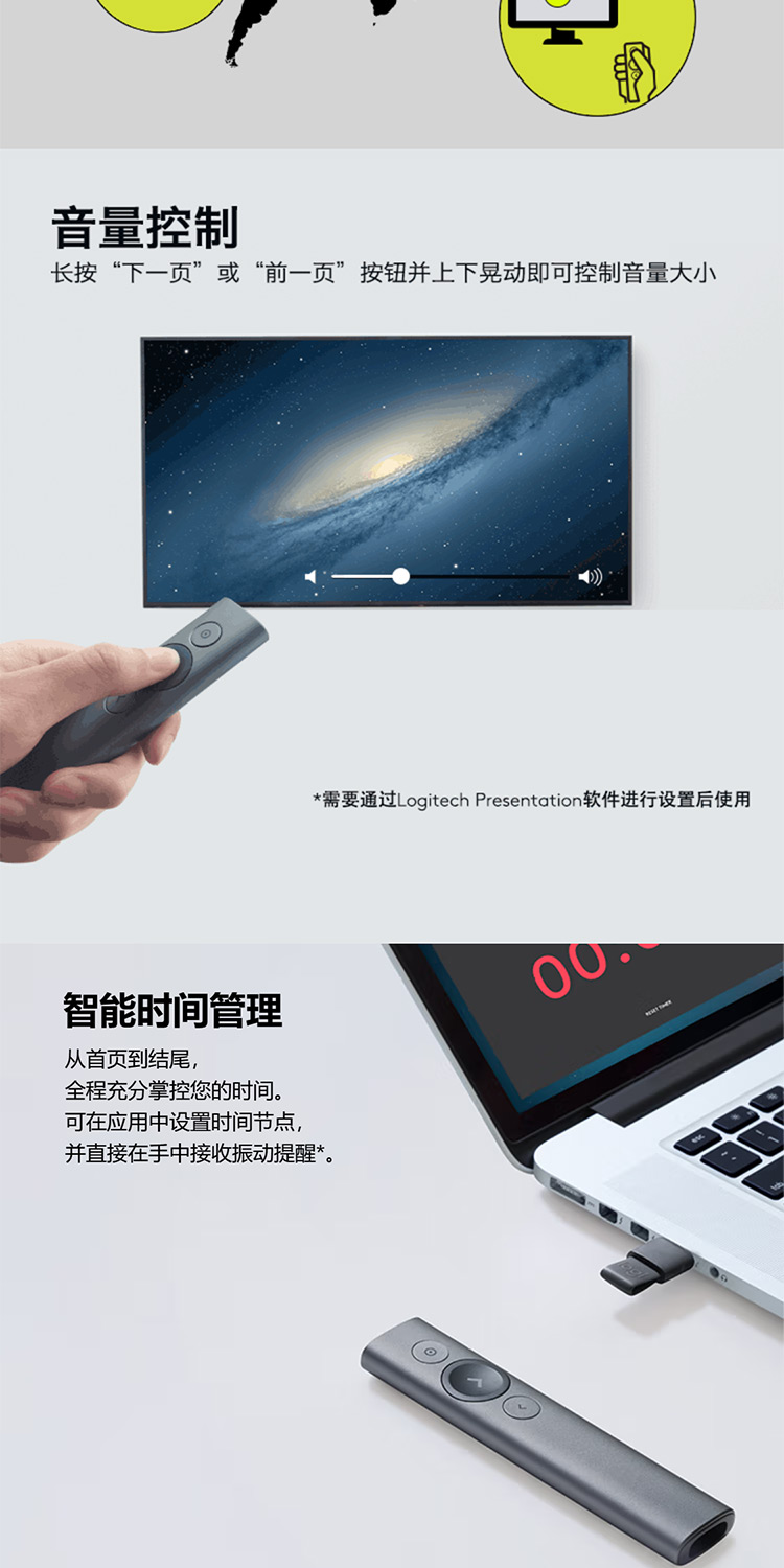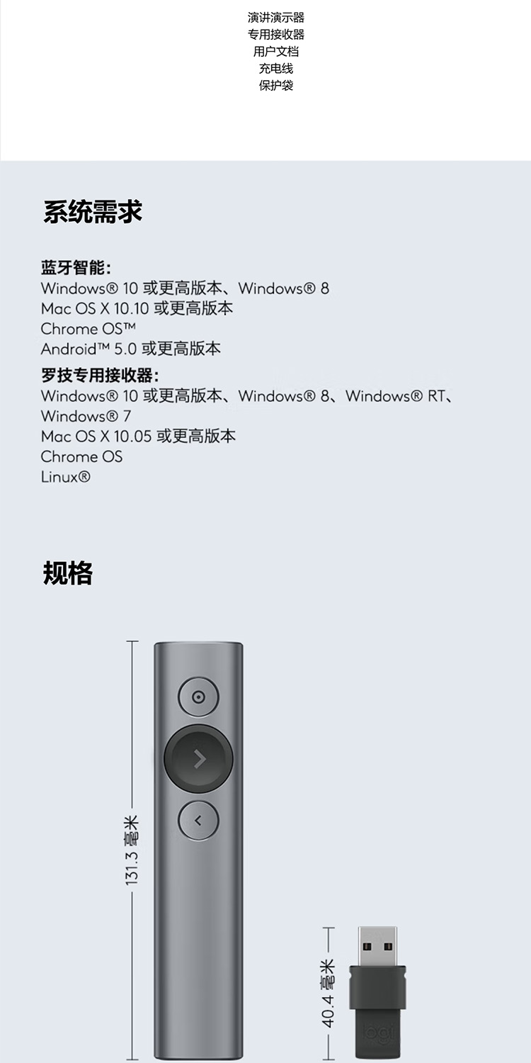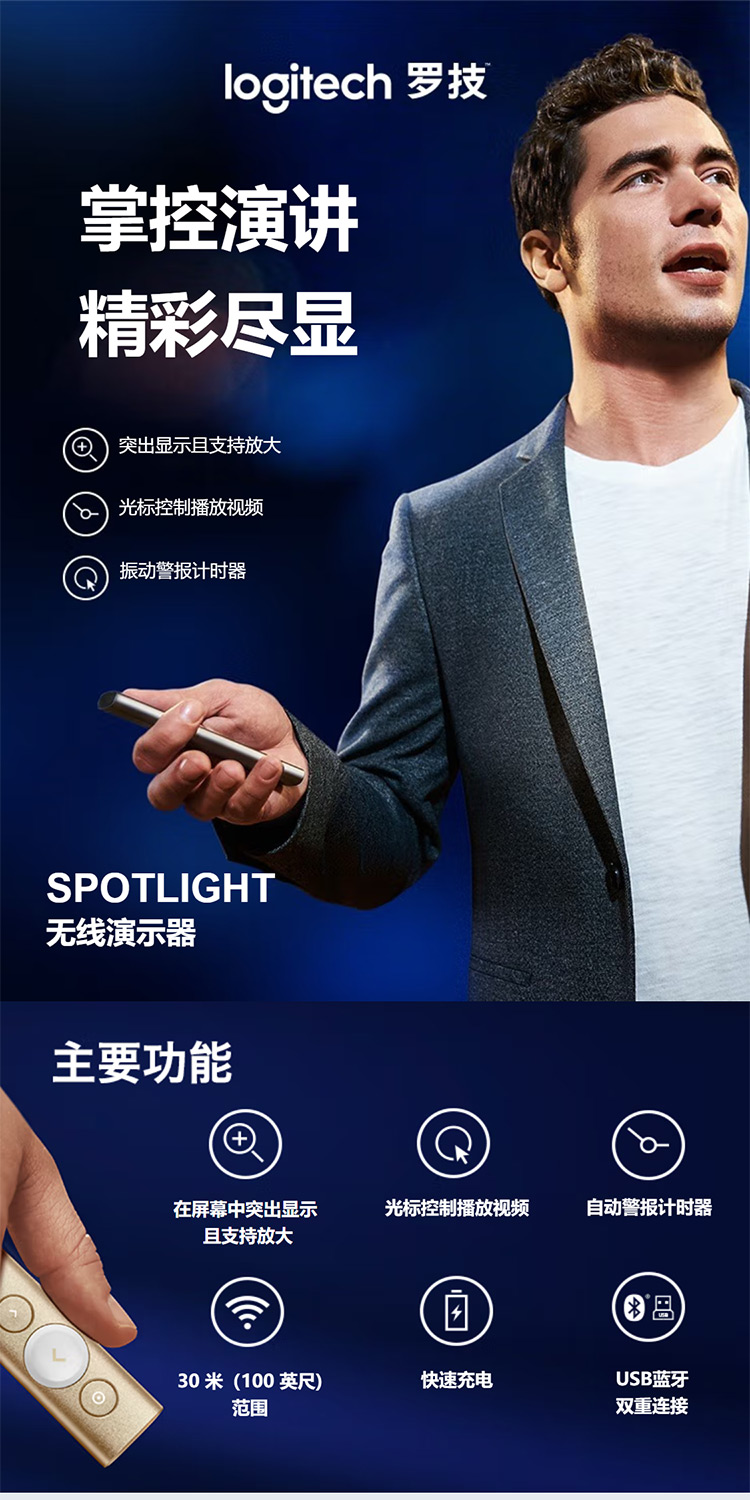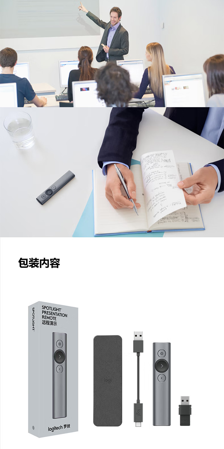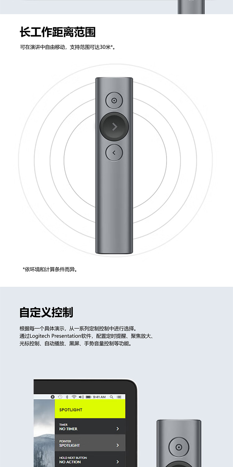 罗技 Spotlight激光翻页笔 演示器 会议演示笔 PPT遥控器