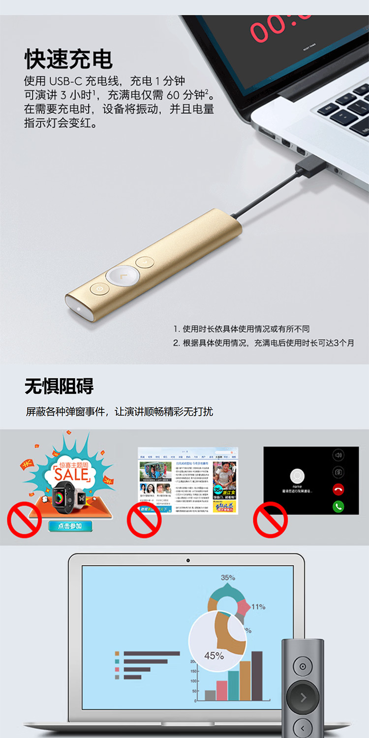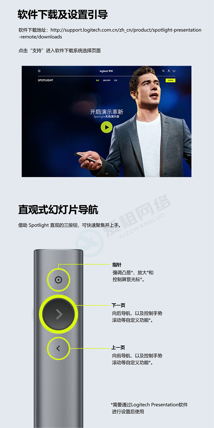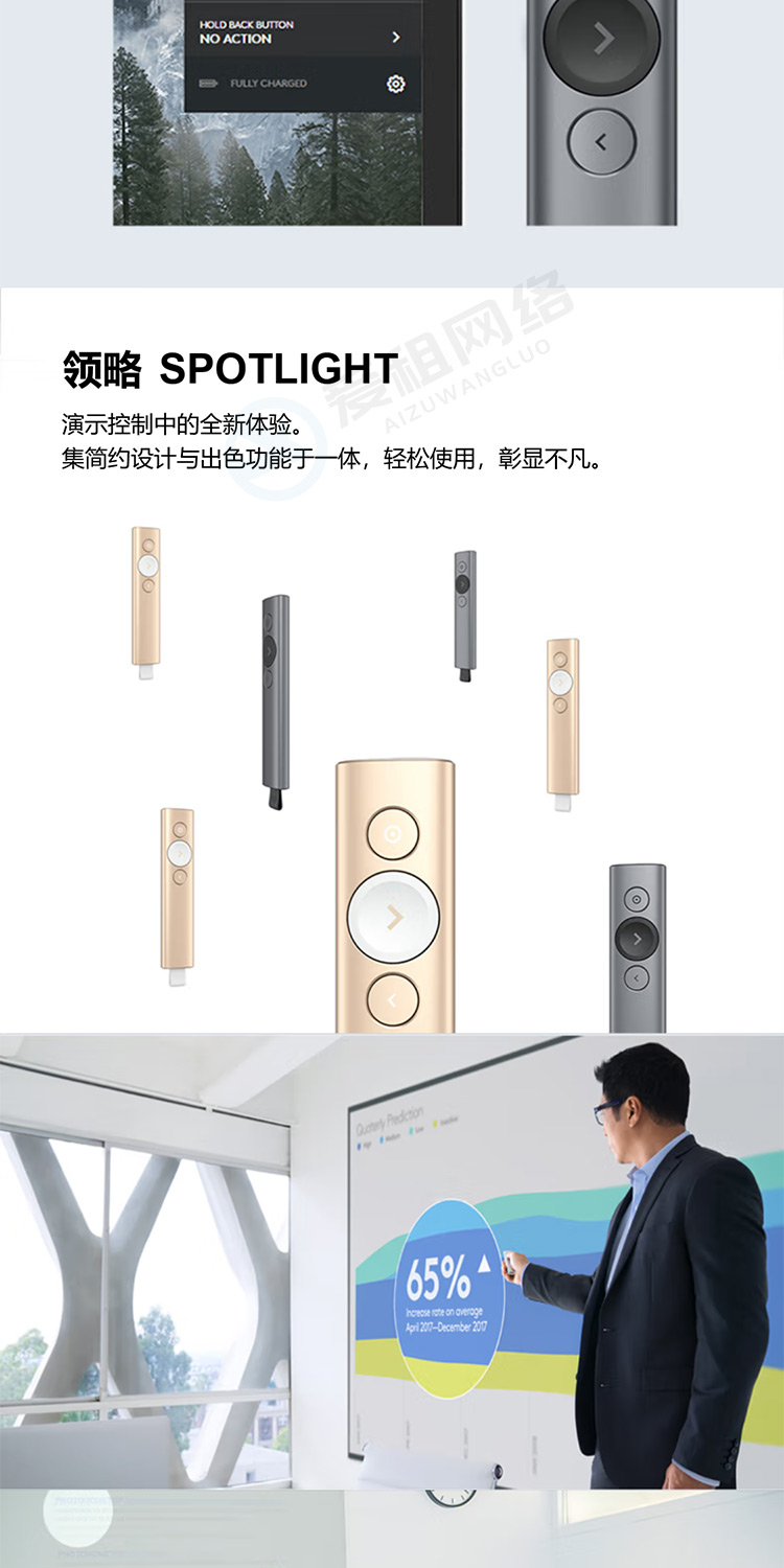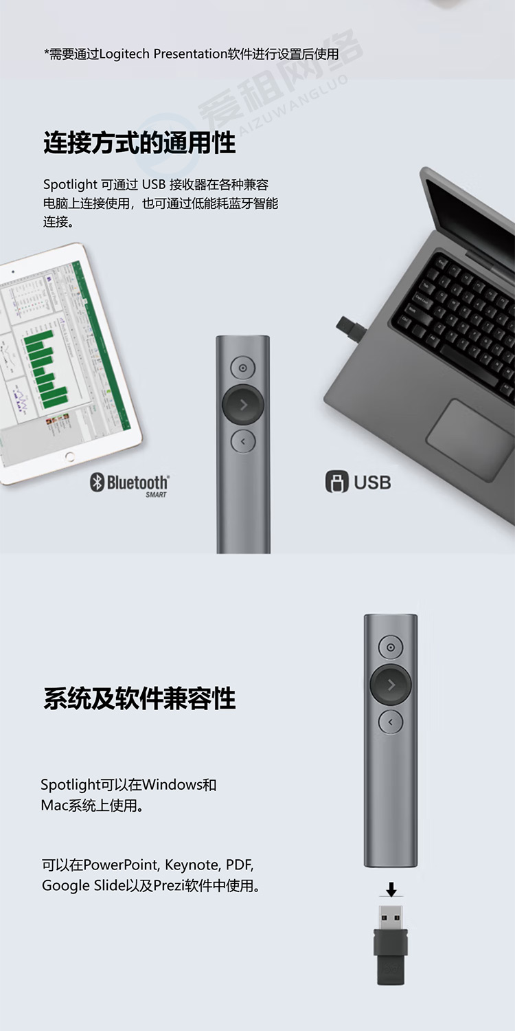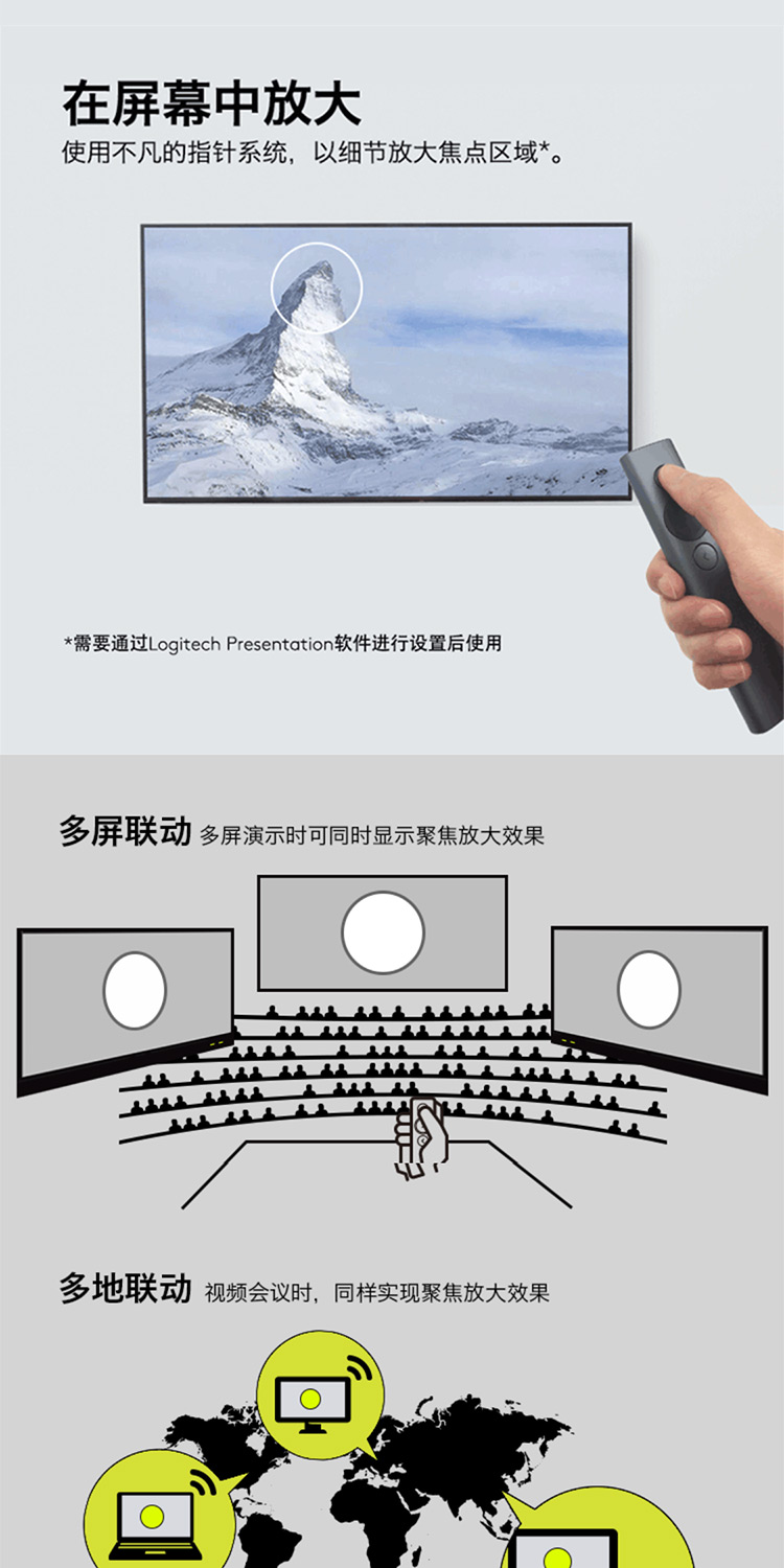 罗技 Spotlight激光翻页笔 演示器 会议演示笔 PPT遥控器